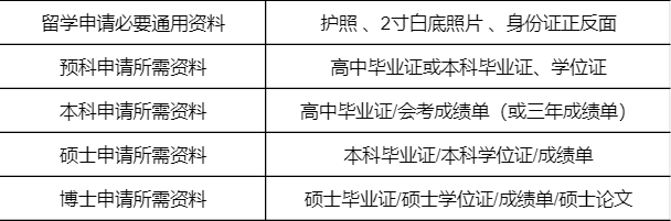 留学申请材料清单【按学制划分】