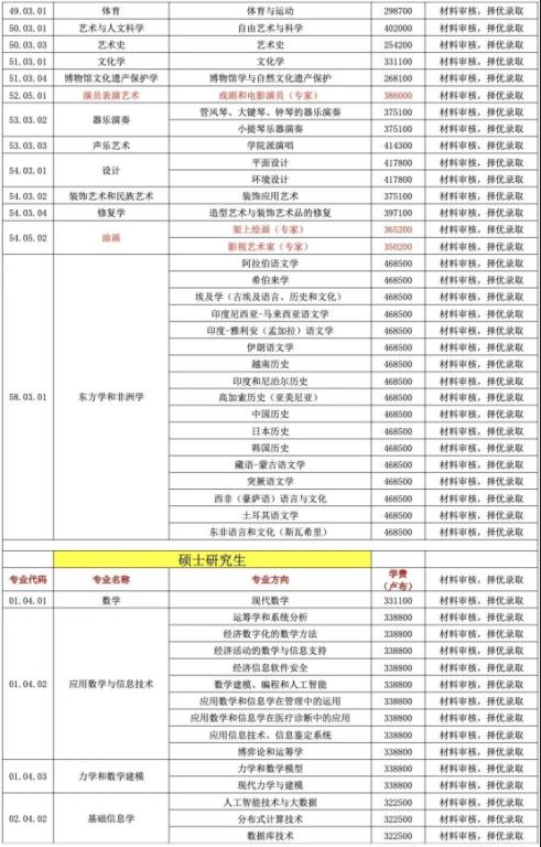 专业及学费