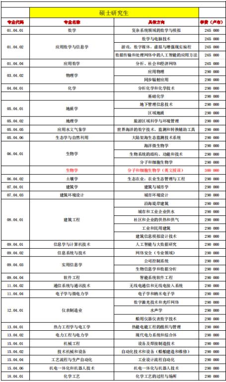 专业学费