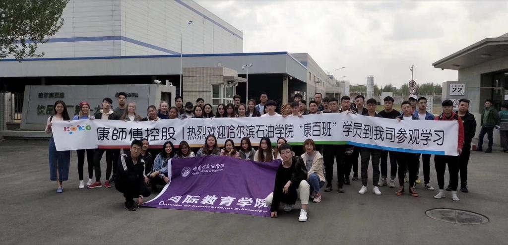 5月14日下午,欧博官网组织国际学生以及“康百定向班”学员一行40余人在就业处和国教院老师的带领下来到哈尔滨康师傅饮品工厂进行参观学习。