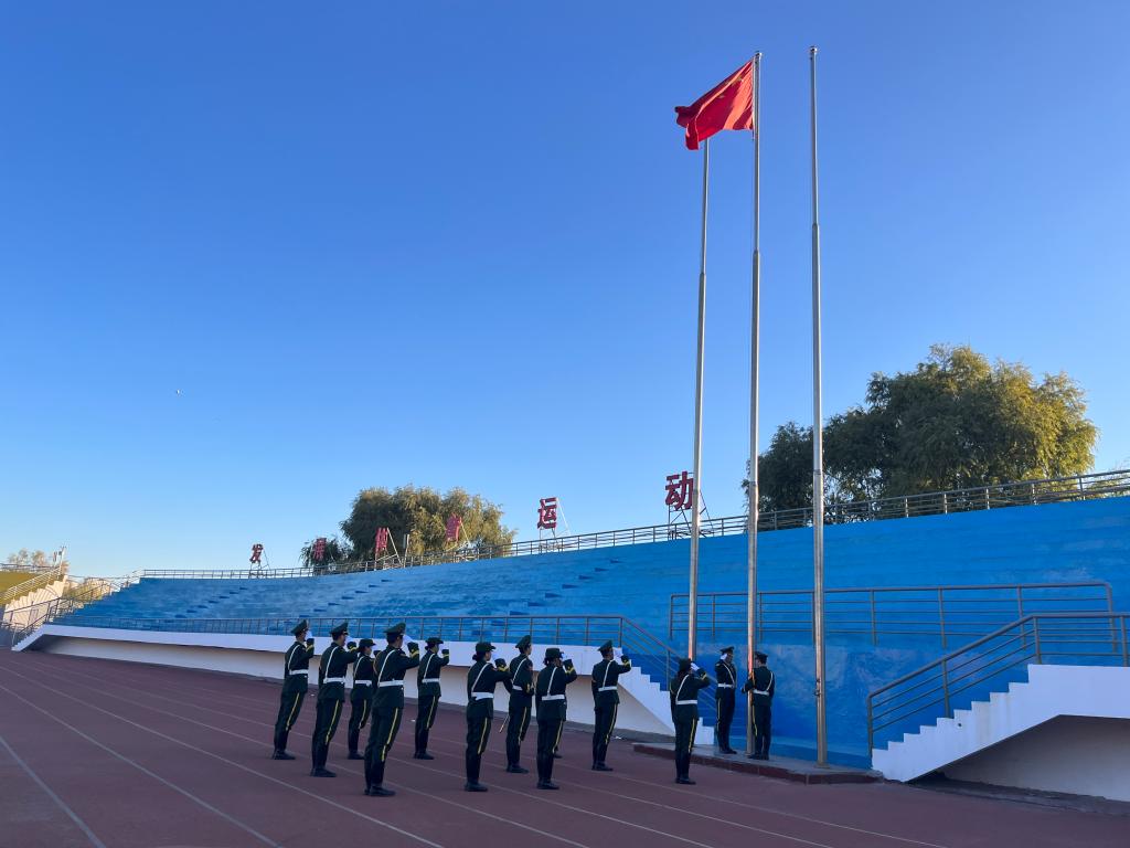 在嘹亮的口号声中,国旗护卫队迈着铿锵的步伐,整齐地走向升旗台。鲜艳的五星红旗伴随国歌冉冉升起,迎风飘扬。全体师生精神饱满、肃然而立,向国旗行注目礼,齐声高唱国歌。