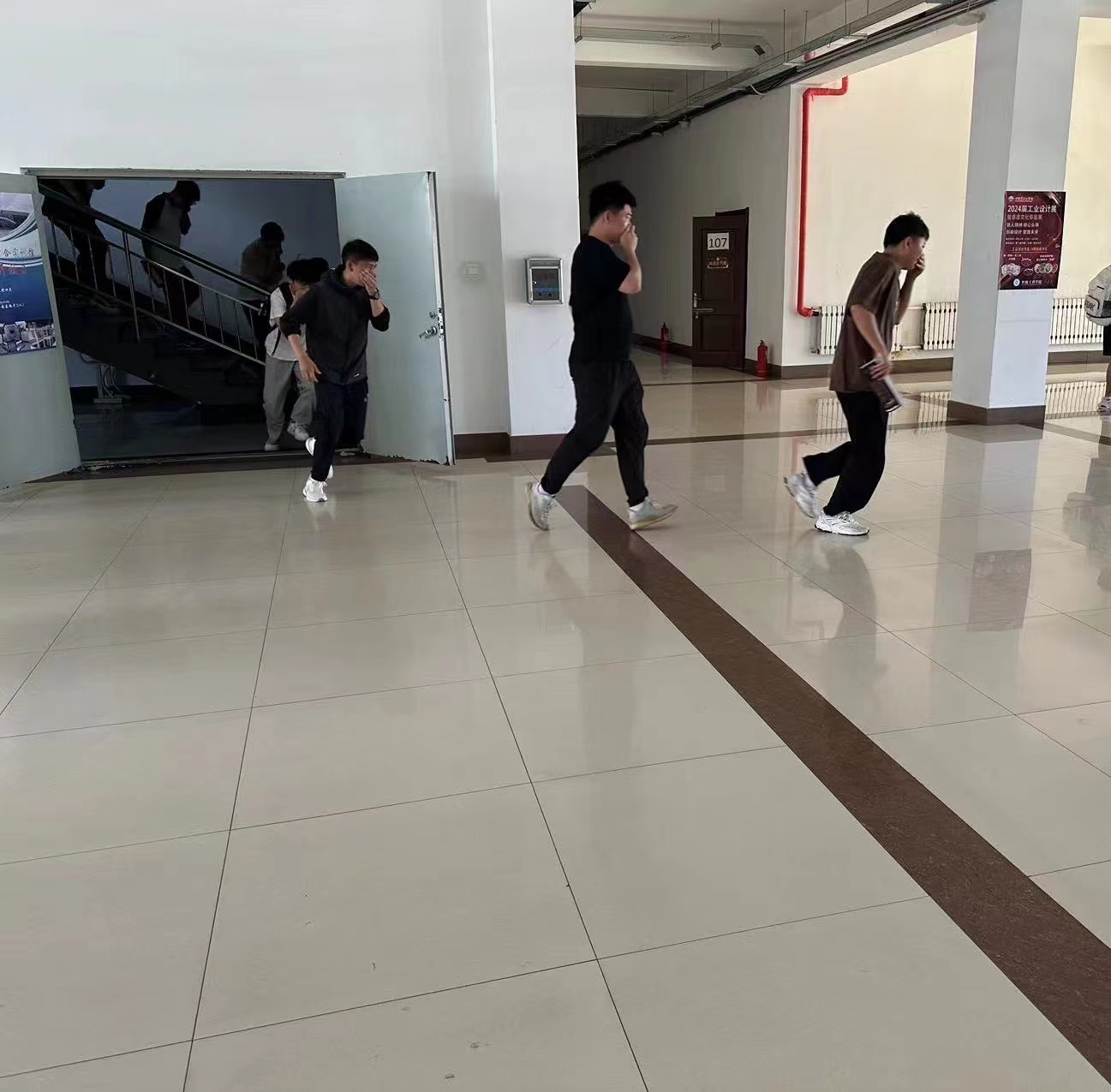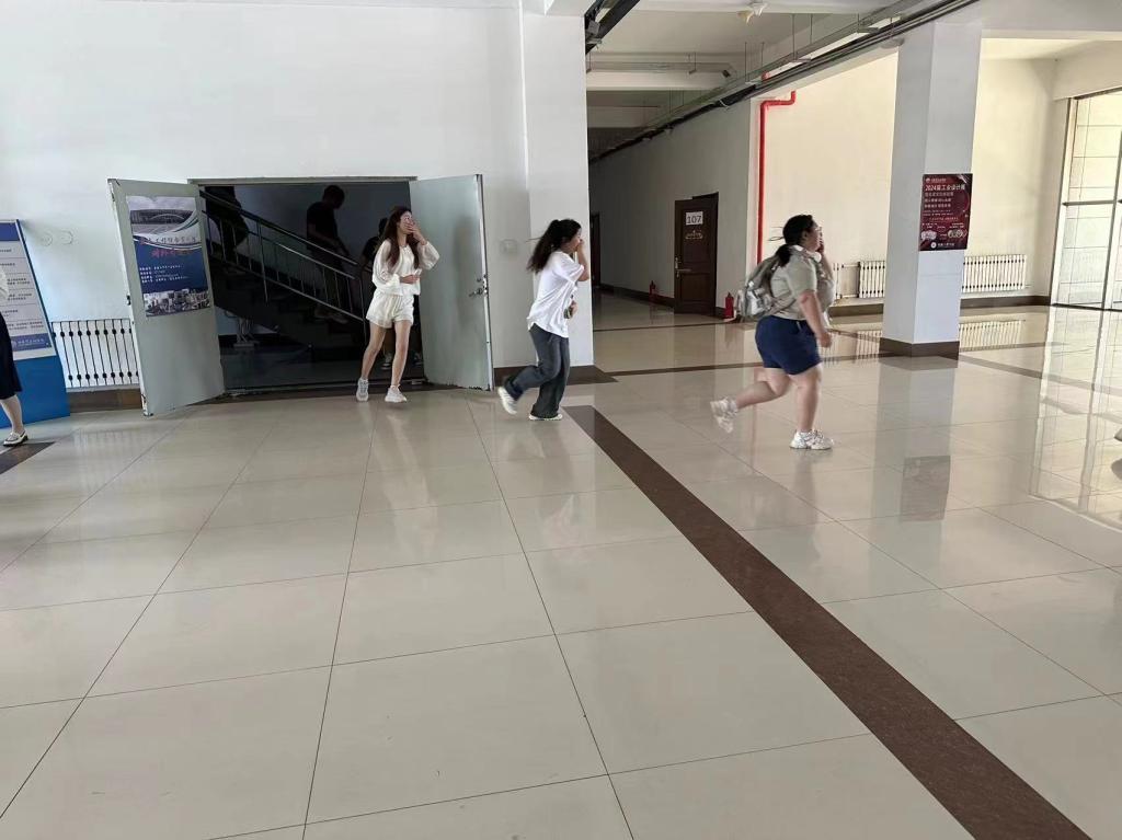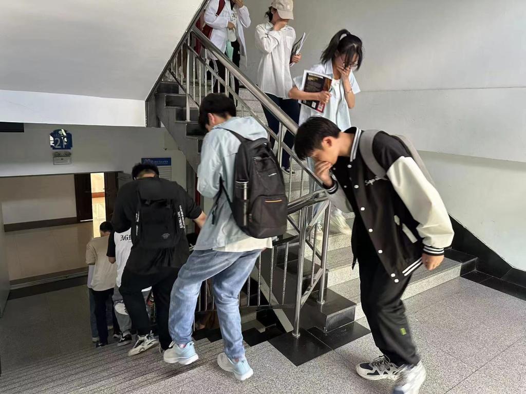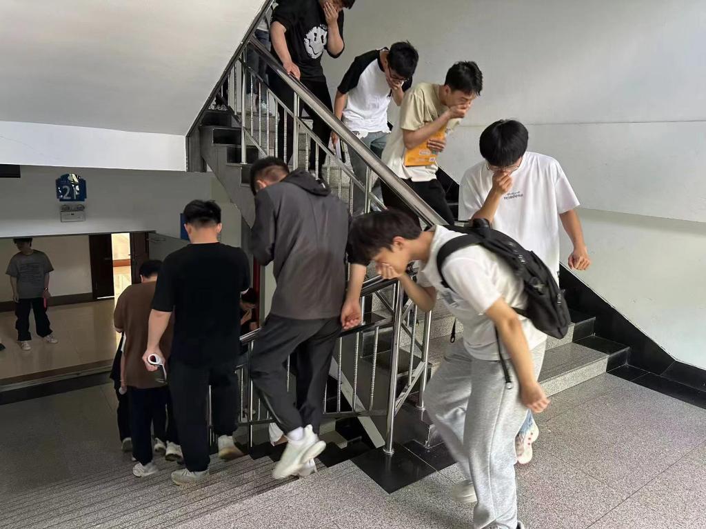 随着警报声的响起,各楼层负责人提前到达指定岗位指导楼内学生快速疏散,学生们迅速反应,按照指定的疏散路线捂住口鼻,弯腰低姿,迅速而有序地向指定的安全区域撤离。我院学生全部安全撤离到指定地点,随后各班级负责人迅速清点人数,并向现场指挥人员报告,经核实参与演练的师生无一遗漏,全部安全撤离。