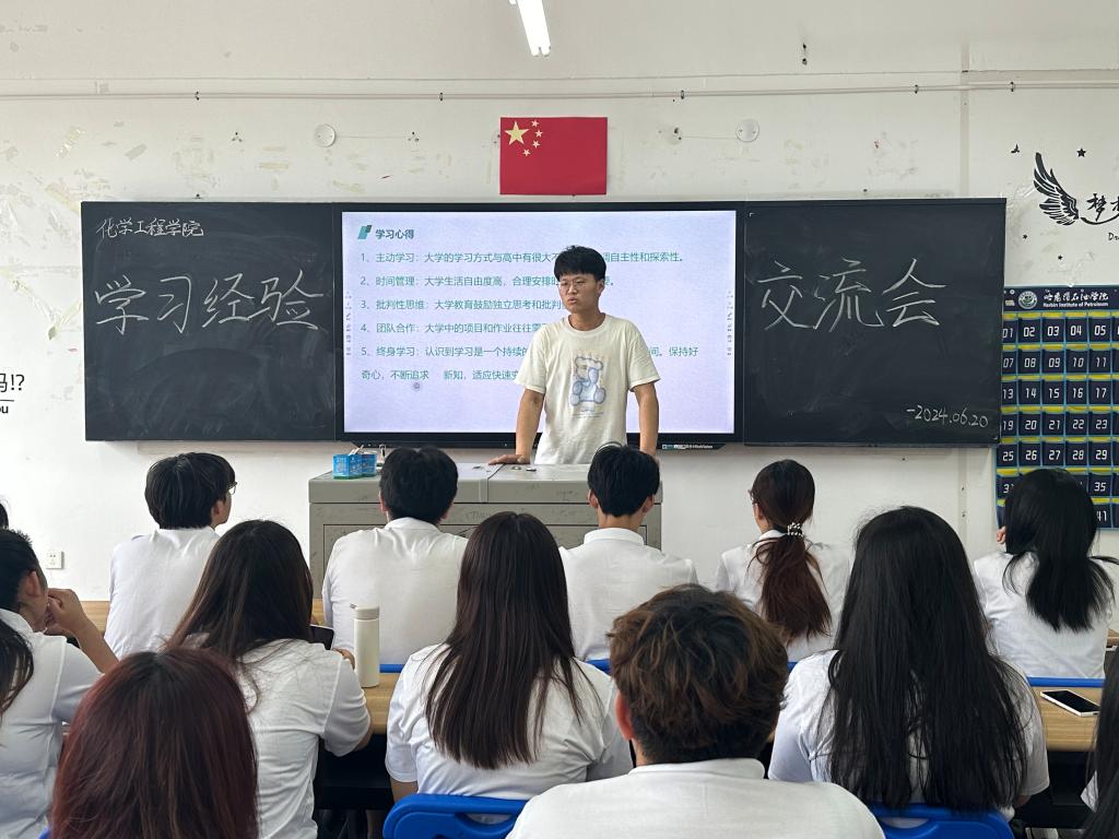 为了丰富校园文化,促进新老生之间的交流,引导新生明确学习方向,树立学习榜样。2024年6月20日,化学工程学院在第二教学楼303教室召开“学习经验交流会”,学院2021级、 2022级、2023级部分学生参加此次活动。