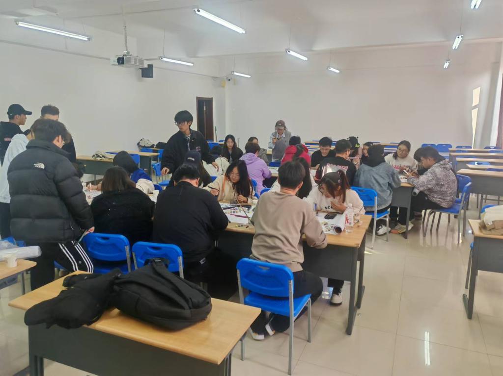 为丰富校园文化生活,帮助学生缓解压力,培养学生的积极心理品质,2024年10月29日,化学工程学院举办“心灵之花 绽放生命华彩”集体绘画活动,2022级辅导员于鑫、2023级辅导员王小丽,23级、24级部分学生参加本次活动。