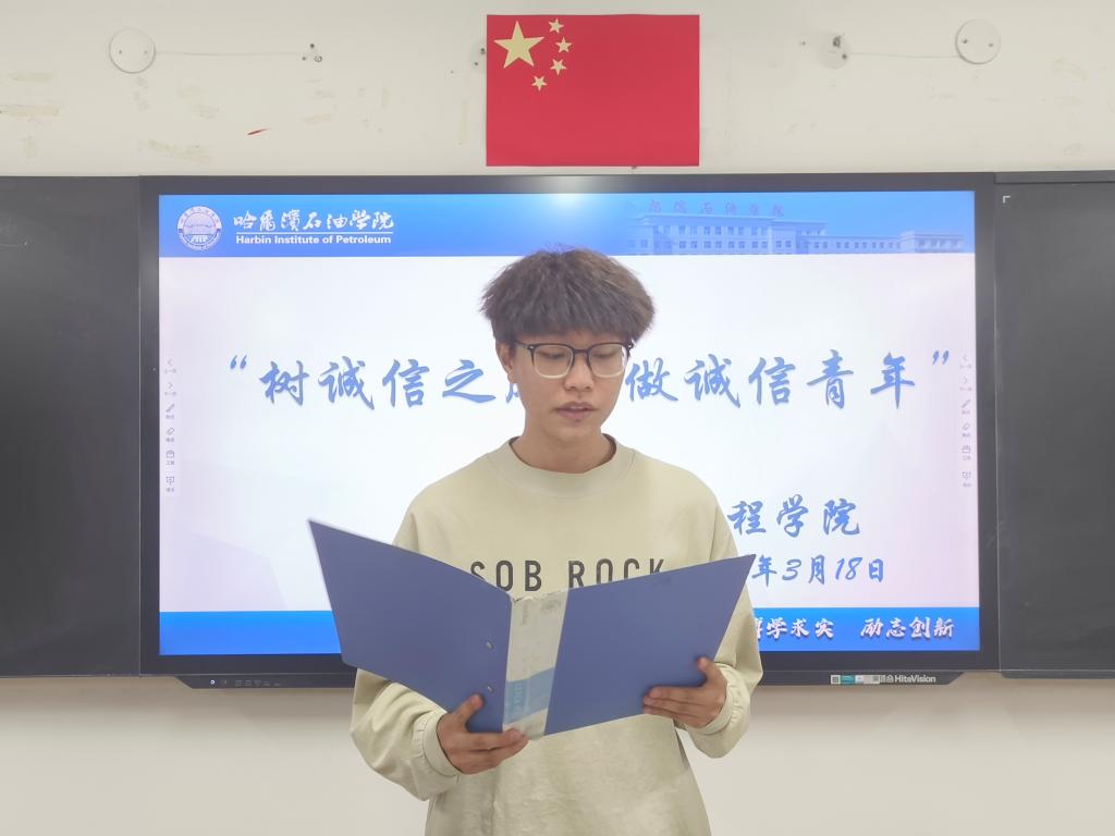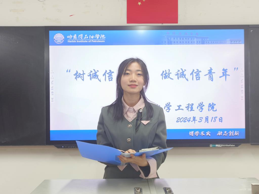 为强化学生的诚信意识,引导学生将“诚信”内化成一种行为习惯,外化为一种自觉行动,树立“说诚信话,办诚信事,做诚信人”的诚信观念,积极营造诚信为荣、失信可耻的校园文化氛围。2024年3月18日,化学工程学院青年志愿者协会于第二教学楼309教室开展以“树诚信之风 做诚信青年”为主题的演讲比赛,化学工程学院学生会及青年志愿者协会全体成员参与。