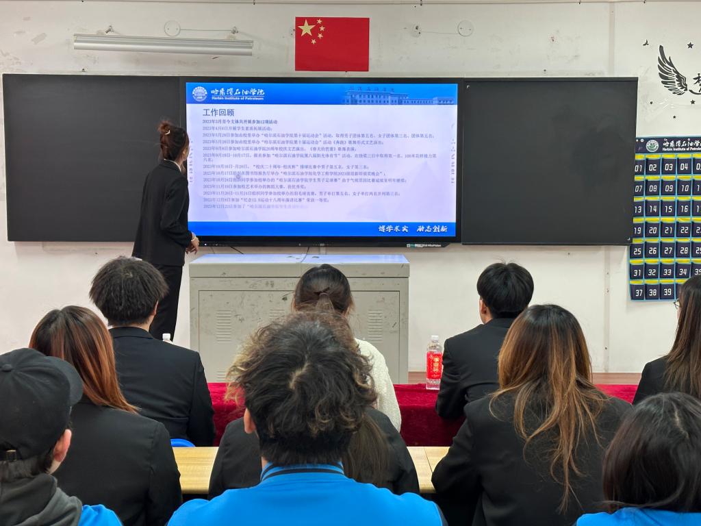 为贯彻落实学生会组织述职评议制度,加强我院学生会干部队伍建设,提升学生会成员的工作能力和水平,2023年12月21日,化学工程学院于第二教学楼309教室举行学生会述职评议会,党总支副书记赵婧、学生会成员参加。