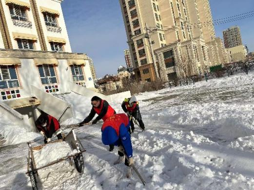 在本次活动中,他们充分发扬不怕苦、不怕累的精神,拿着铁锹奋力铲冰清雪,他们冲在前、干在先、战严寒、斗冰雪,分工有序,干得热火朝天,道路上演奏着“咣咣咔咔嚓嚓”的扫雪除冰“进行曲”。忙碌的身影映衬着红色的马甲,在冬天凛冽的寒风中形成一道靓丽的风景线。志愿者们劳动的热情和团结的力量让这个冬天变得格外温暖,经过一个多小时的奋战,为老人们开辟出一条洋溢着暖暖温情的方便之路。