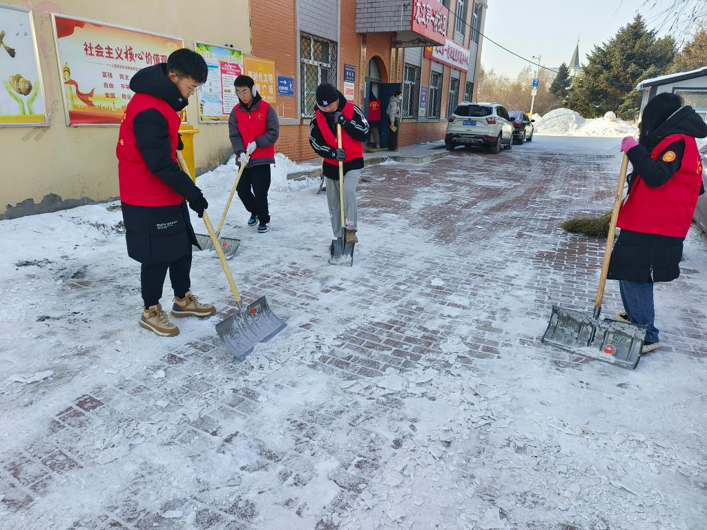 在活动中,志愿者们分工明确,充分发扬不怕苦、不怕累的志愿者服务精神,志愿者们分成小组,拿起铁铲、扫帚等工具,齐心协力的清扫社区道路和居民楼周围的积雪,一件件红马甲成为了冰雪天地里一道靓丽的风景线,尽管天气寒风刺骨,但大家的热情和决心丝毫不减,他们用实际行动展示出团结协作的力量,展现青春的活力和担当的精神!