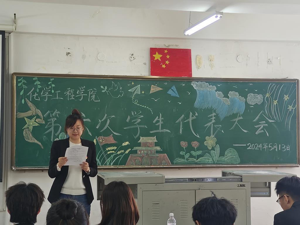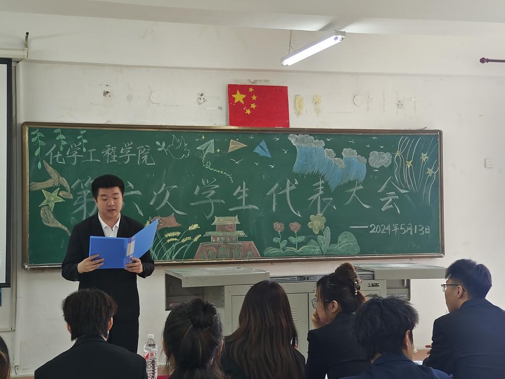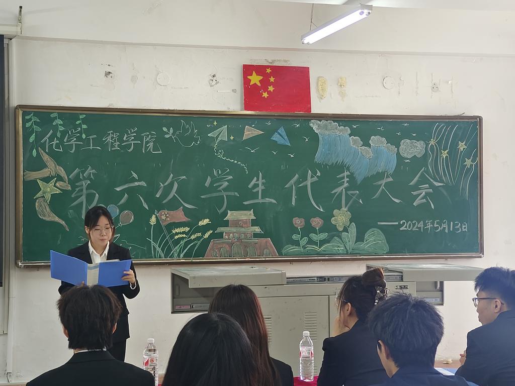 为加强学生思想政治建设,努力打造高素质学生干部队伍,进一步巩固学生会改革成果,2024年5月15日,化学工程学院于第二教学楼316室召开第六次学生代表大会,学院党总支副书记赵婧及80名学生代表出席本次会议,大会由刘青松同学主持。