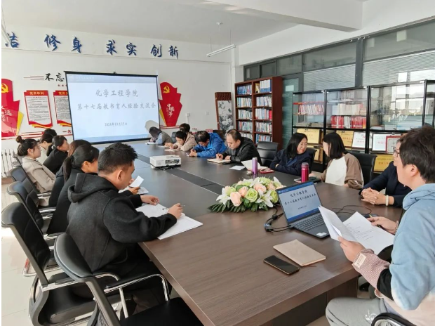 为进一步推广优秀教师教书育人成功经验,充分发挥优秀教师以点带面的榜样作用,将教书育人经验转变为全体教师的共同财富,提升学院教师教书育人水平。2024年10月15日,化学工程学院在学院三楼会议室组织召开第十七届教书育人经验交流会。会议由副院长彭殿宝主持,院长杨昕、党总支书记赵婧及全体教师参加会议。