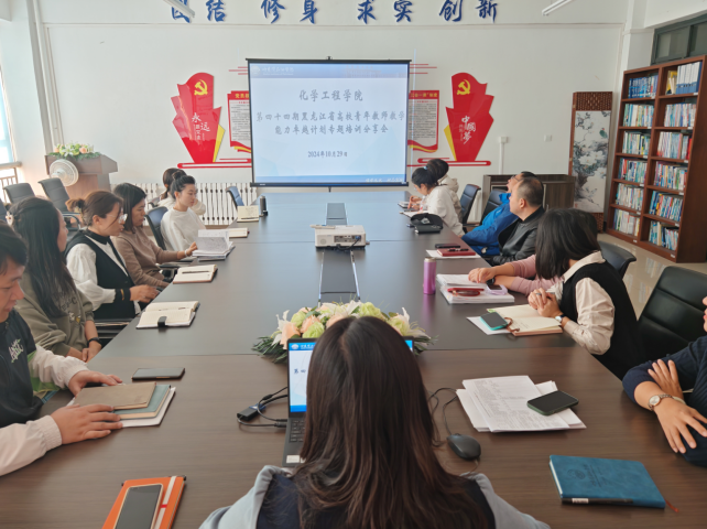 为进一步拓展教师视野,让更多教师了解教育教学的前沿信息,为教师搭建相互交流和学习的平台。2024年10月29日,化学工程学院组织召开培训分享会,邀请受学校委派参加第四十四期黑龙江省高校青年教师教学能力卓越计划专题培训的陈东雪老师分享培训内容和学习体会。会议由副院长彭殿宝主持,院长杨昕及全体任课教师参加会议。
