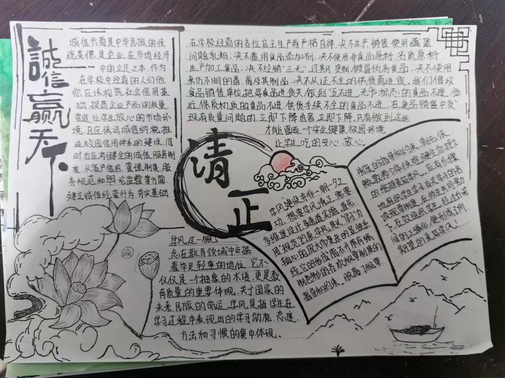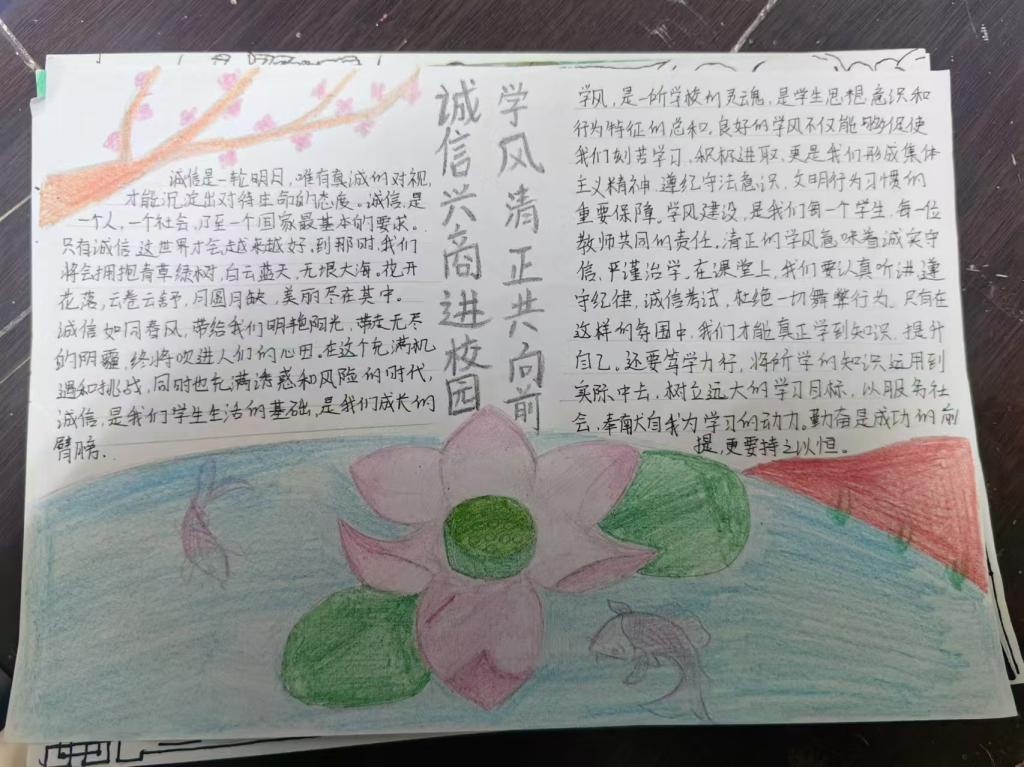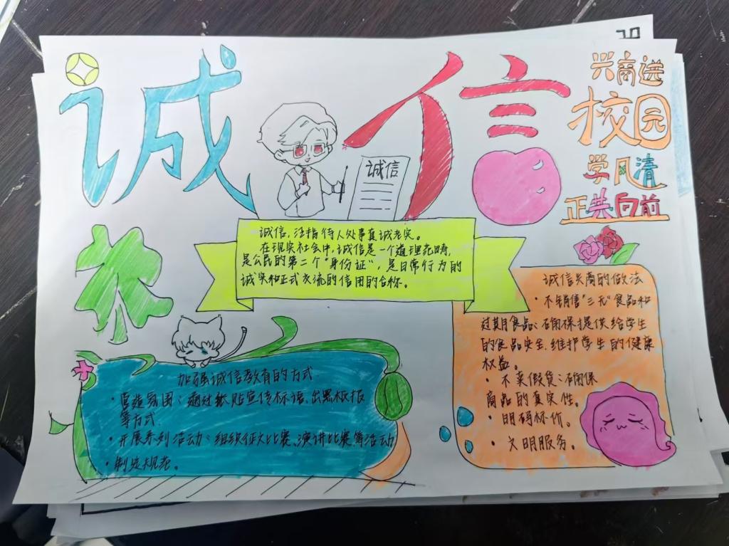 本次手抄报活动我院学子积极响应,踊跃参与并通过绘画、文字等形式展示了诚实守信的重要意义,营造积极向上的校园文化氛围,推动诚信兴商理念和清正学风的传播,未来,我院将持续开展“诚信教育”相关活动,并以此为契机,进一步加强学院素质教育,培养品学兼优、德才兼备的新时代接班人。