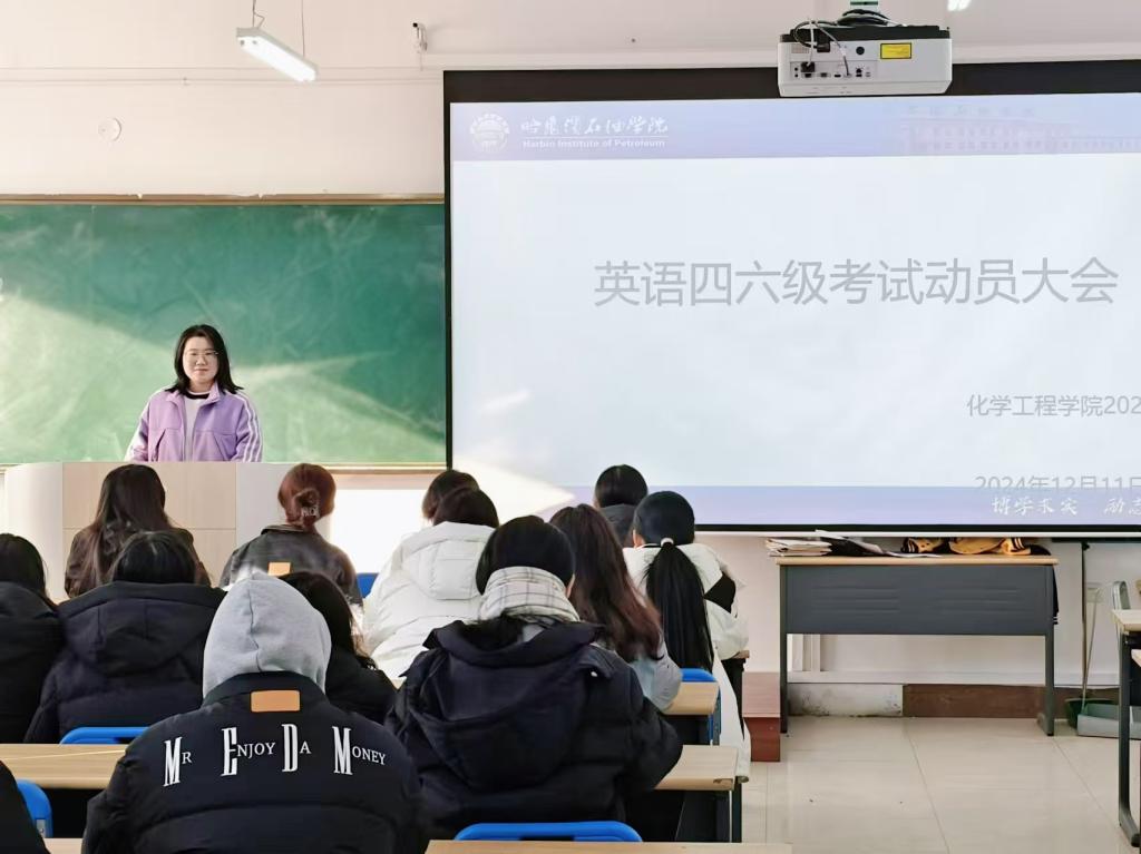 为扎实做好大学生四六级考试工作,提高学生诚信考试意识,进一步规范考试管理、严肃考风考纪、维护考试的公平公正、促进优良学风的养成。2024年12月11日,化学工程学院召开英语四六级考风考纪动员大会。会议由各年级辅导员老师主讲,以线上线下相结合的方式开展,2021级、2022级、2023级、2024级全体四六级考生参与。