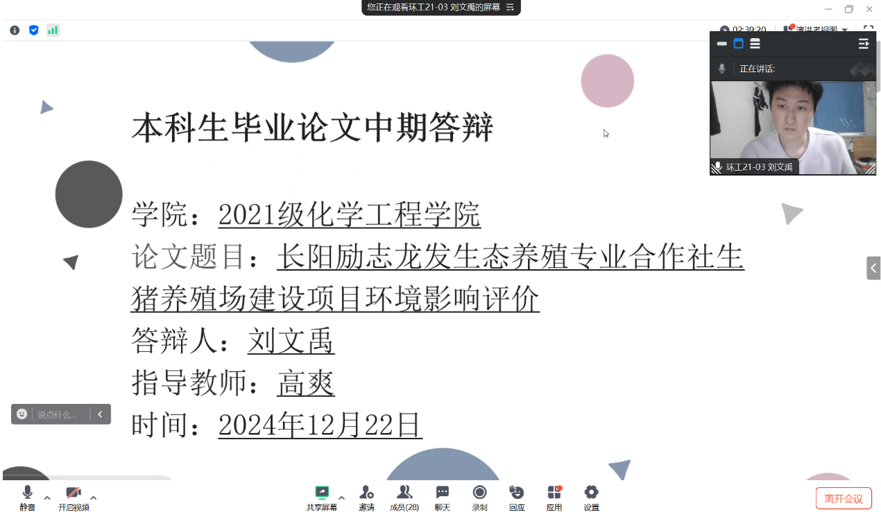 12月22日,学院组织中期检查线上答辩。将学生分成九组,利用PPT汇报论文的完成进展情况,针对未完成的任务给出了具体的完成时间,并提出了目前所面临的困难。答辩教师针对毕业论文(设计)中存在的困难问题给出了相应的解决措施,并对进展相对缓慢的学生,进行了严格督促。