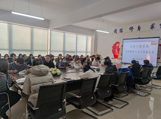 为全面总结回顾本年度各项工作,布置安排假期工作任务,清晰规划新学期工作思路。12月30日,化学工程学院在学院会议室组织召开全院教职工期末总结大会。会议由院长杨昕主持,党总支书记赵婧、副院长彭殿宝及全体教职员工参加。