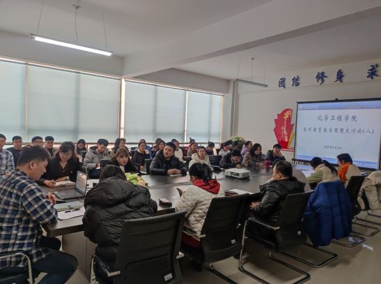根据《化学工程学院开展本科教育教学思想大讨论实施方案》要求,3月4日,学院组织开展本科教育教学思想大讨论第八次集中学习讨论活动,学习活动由副院长彭殿宝主持,院长杨昕、党总支书记赵婧及学院全体教师参加。