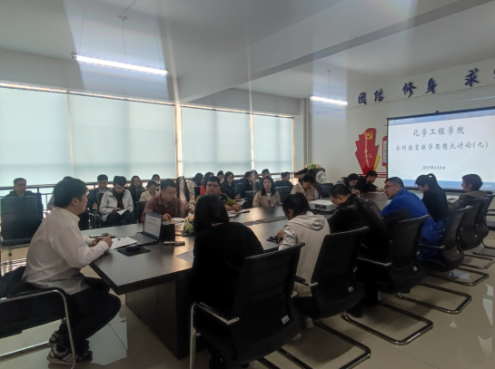 根据《化学工程学院开展本科教育教学思想大讨论实施方案》要求,4月8日,学院组织开展本科教育教学思想大讨论第九次集中学习研讨活动,学习活动由副院长彭殿宝主持,学院全体教师参加。