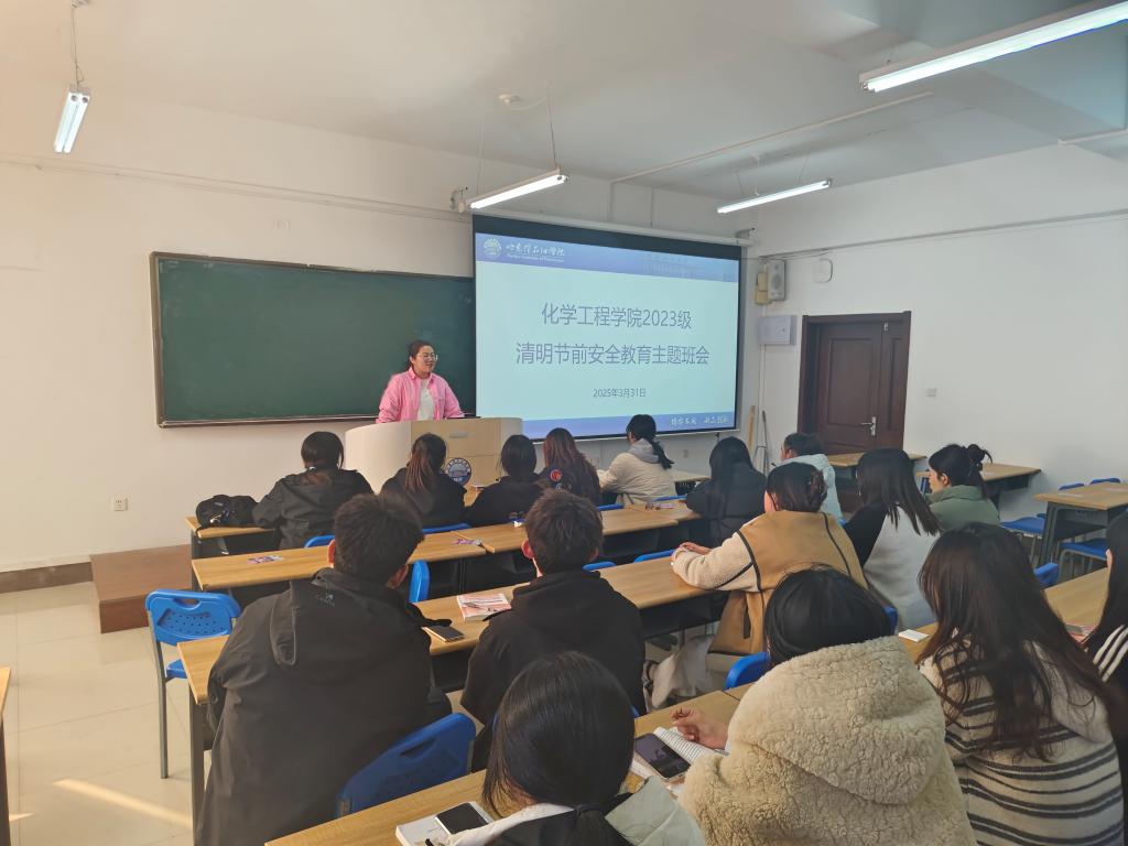 为切实加强清明节期间学生安全教育,提高学生安全防范意识,2025年3月31日-4月2日,化学工程学院组织开展清明节安全教育主题班会,班会由各年级辅导员主持,全体同学积极参与。