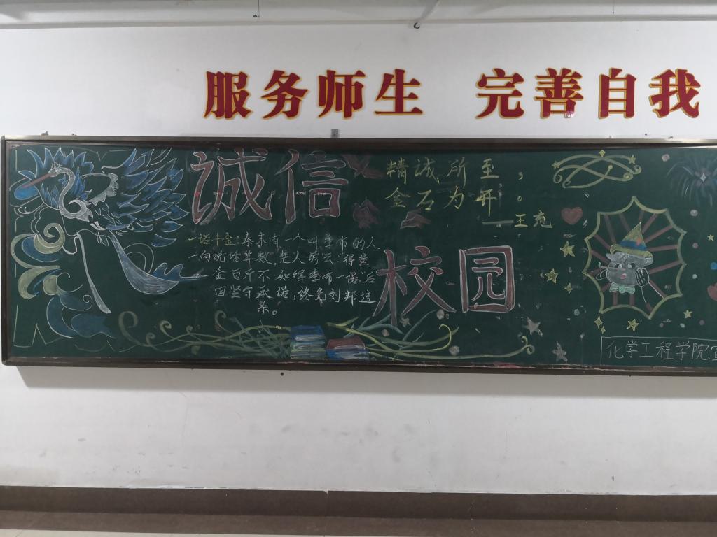 活动现场,同学们围绕 “诚信” 主题,精心绘制了一幅幅精美的黑板报。他们用绚丽的色彩、生动的图案和深刻的文字,诠释着诚信的内涵与价值。有的黑板报以诚信名言为核心,搭配相关的典故插画;有的则结合校园生活中的点滴小事,展现诚信在日常交往和学习中的重要性,引得过往师生纷纷驻足欣赏、称赞。