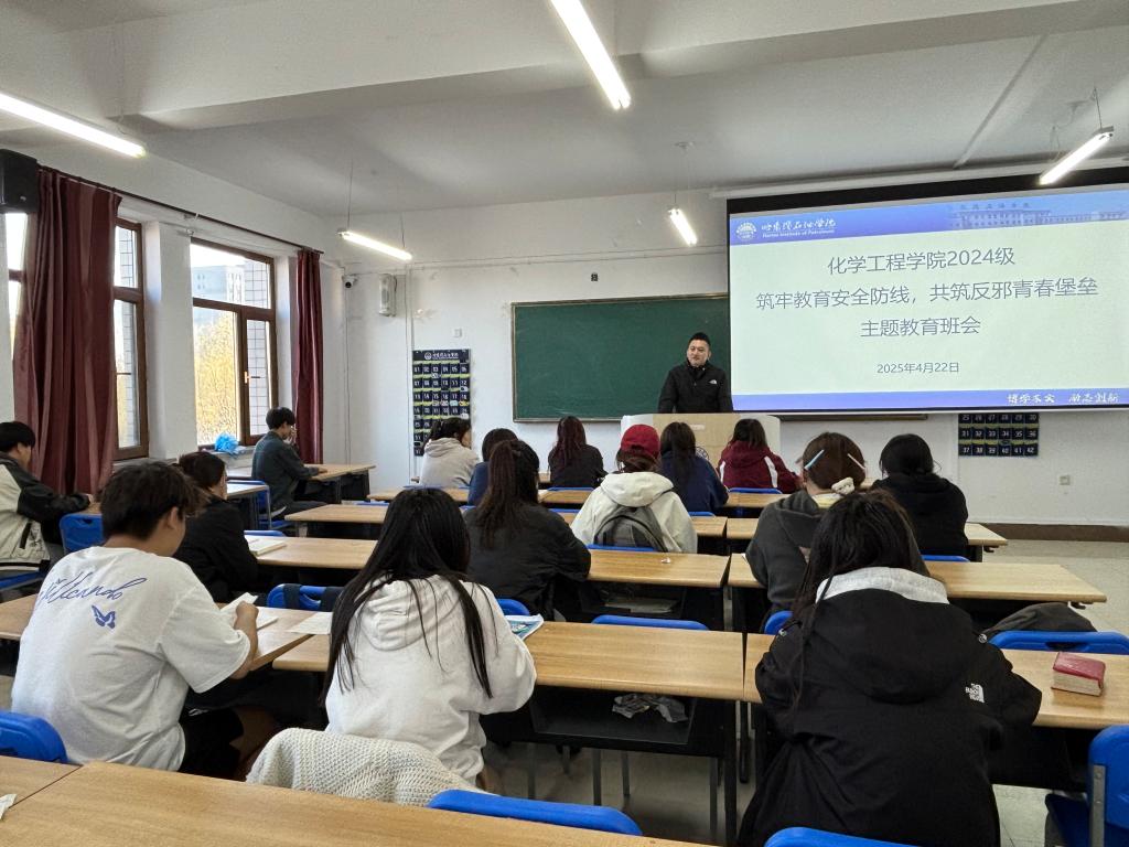 为进一步强化学生总体国家安全观与反邪教意识,营造安全文明的校园环境,2025年4月21至22日,化学工程学院开展“筑牢教育安全防线,共筑反邪青春堡垒”主题教育班会。此次班会由各年级辅导员主持,全体同学积极参与。