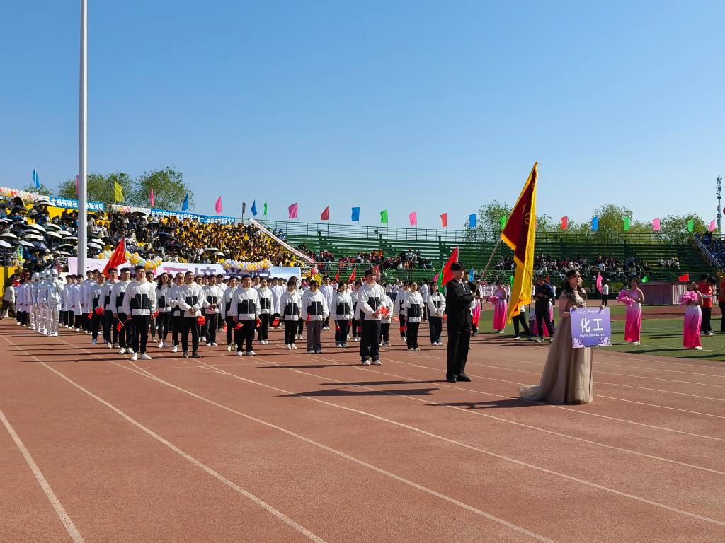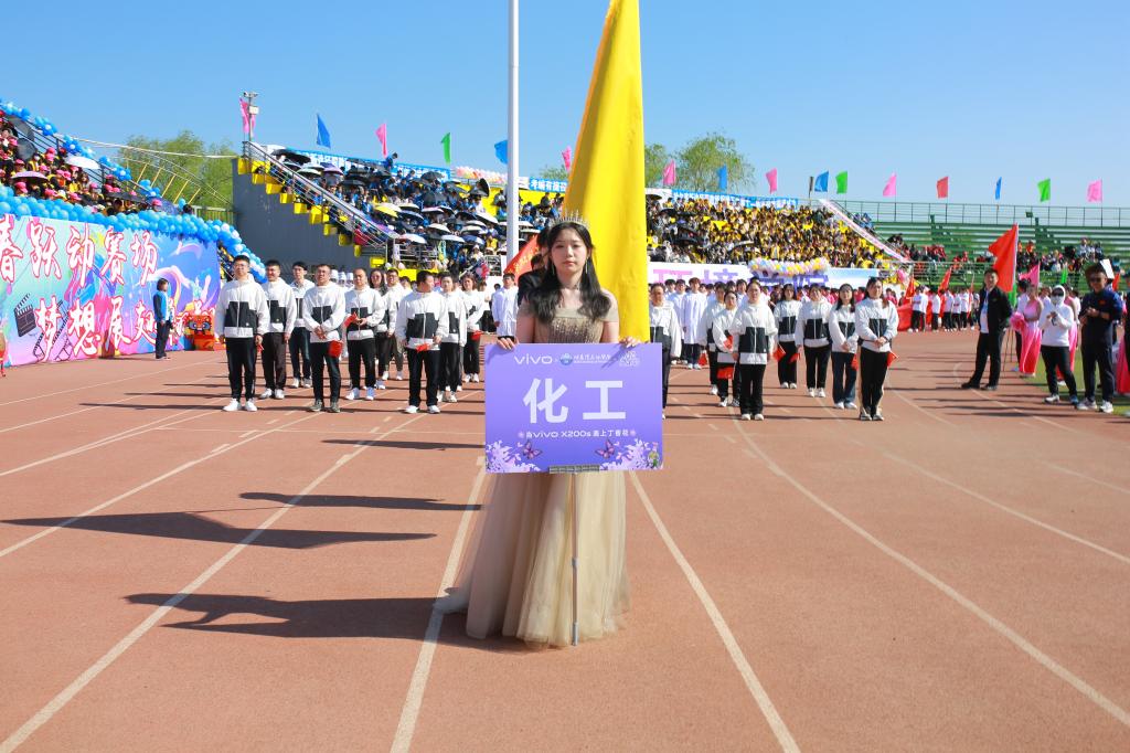 沐浴着灿烂的阳光,踏着激昂的旋律,化学工程学院的检阅方队昂首阔步走来。