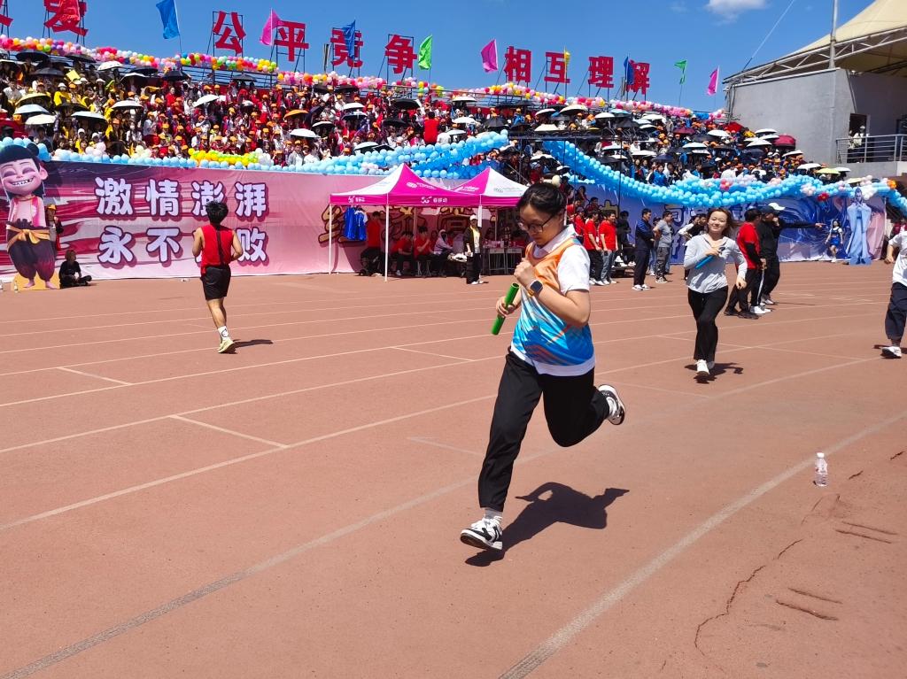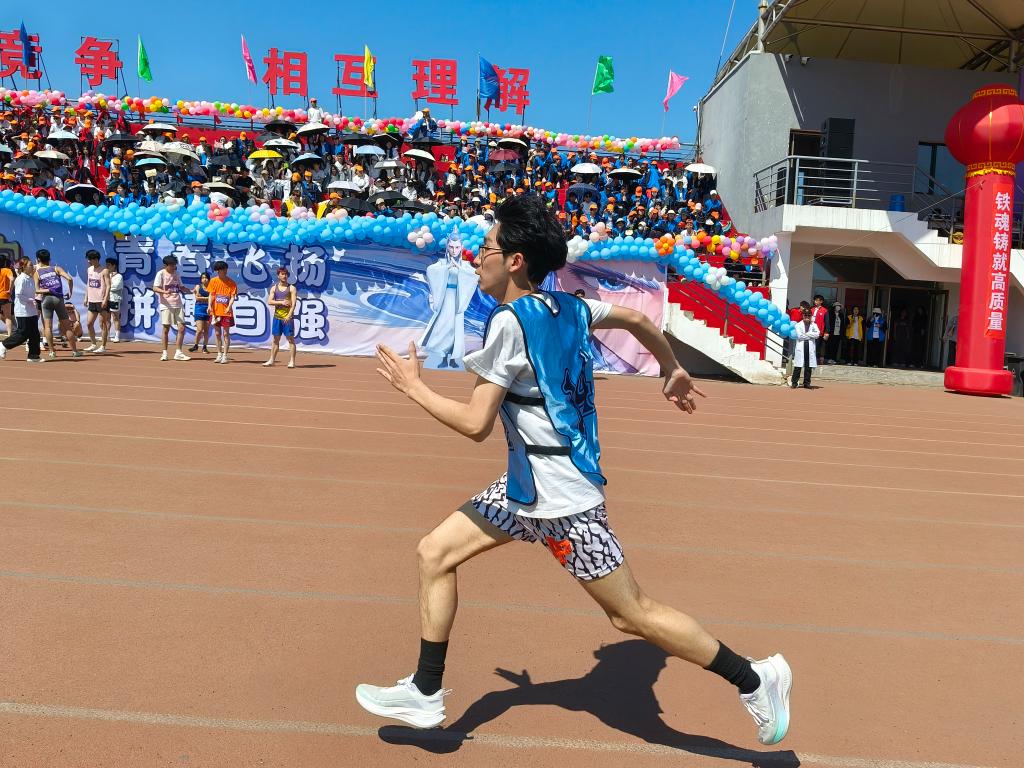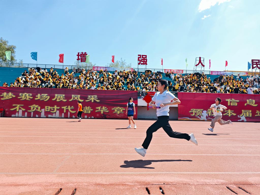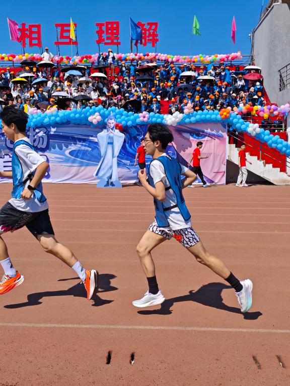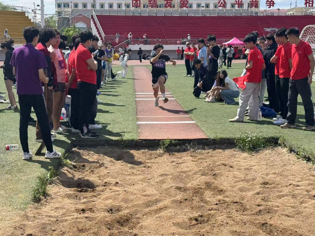 跑道之上,他们化作离弦之箭,风驰电掣,每一次摆臂都凝聚着力量,每一步跨越都迸发着激情;跳高杆前,他们如灵巧的羚羊,轻盈腾跃,用矫健身姿挑战高度;跳远沙坑边,他们似蓄势的蛟龙,奋力一跃,让飞扬的沙粒铭记拼搏的瞬间。每一滴汗水都闪耀着光芒,每一声呐喊都饱含着斗志。