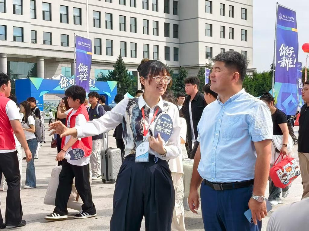 学院领导也来到迎新现场,与新生及家长面对面交流。从专业培养方向到校园生活细节,领导们细致解答疑问,不仅为新生勾勒出大学学习的清晰轮廓,更让家长们放下牵挂,让这份初入校园的期待,多了一份踏实与安心。
