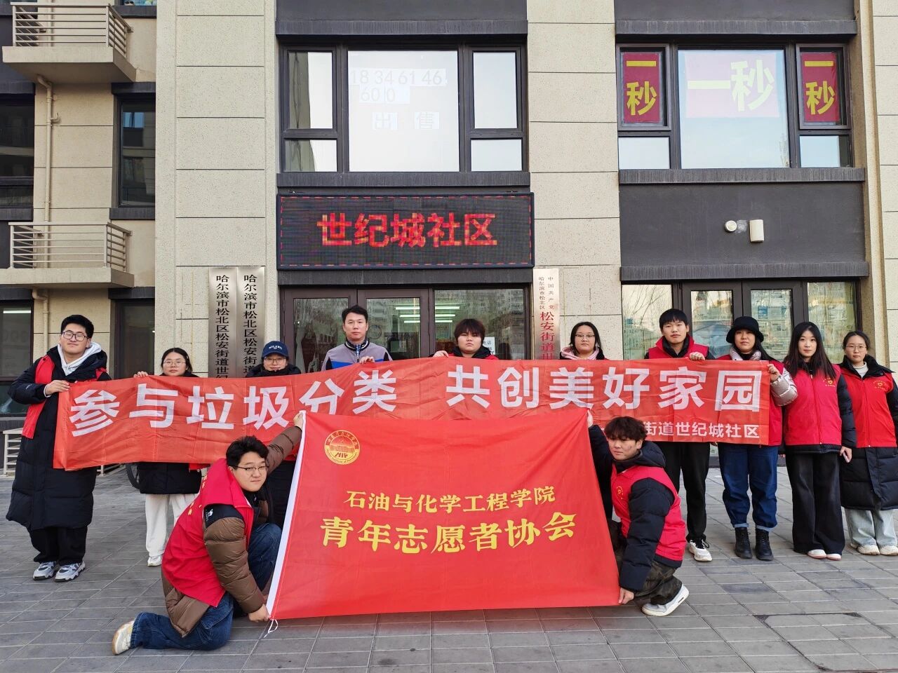 为践行青年社会责任,助力生态文明与社区建设,提升社区居民的环保意识与防诈骗能力,2025年11月25日,欧博abg游戏登录入口石油与化学工程学院青年志愿者协会的十余名学生志愿者,前往世纪城社区,成功开展了“垃圾分类践于行,反诈宣传护于心”主题志愿服务活动。