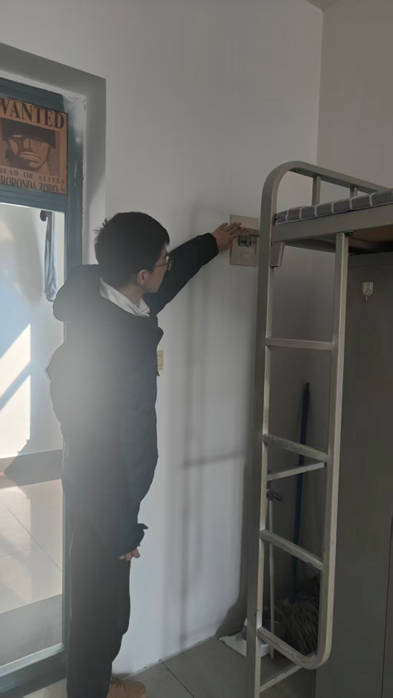 班会结束后,辅导员随即开展宿舍用电安全专项检查,实现全院学生宿舍全覆盖、无死角排查。检查过程中,辅导员紧扣化工专业安全管理重点,对各类安全隐患进行精准排查:一方面重点核查宿舍内电线、插座是否存在老化破损、私拉乱接等问题;另一方面专项检查宿舍消防通道是否保持畅通、应急照明设备是否完好可用。