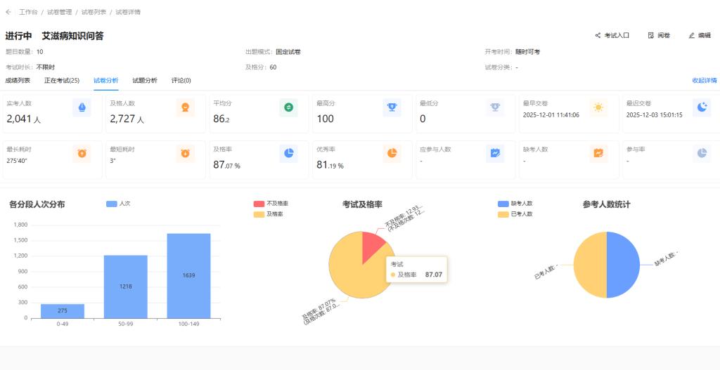 主题答题活动采用线上模式开展,吸引全院学子积极参与。答题内容涵盖防艾核心知识、社会关爱倡议等多个维度,既注重专业性又兼顾趣味性,全面检验学生对防艾知识的掌握程度。答题过程中,同学们踊跃思考、相互探讨,在一问一答间巩固知识要点,在思维碰撞中深化理解认知。一张张认真填写的试卷,不仅展现了同学们对健康的珍视,更彰显了青年一代的社会公益热忱。
