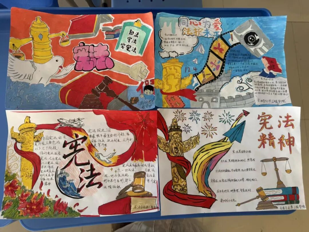 此次手抄报创作活动,不仅丰富了宪法宣传教育的形式,更实现了法治文化与专业教育的有机融合。同学们在创作中深化了对宪法的理解,在交流中增强了法治意识,为培养兼具专业素养与法治精神的新时代化工人才奠定了坚实基础,也为法治校园建设注入了青春活力。