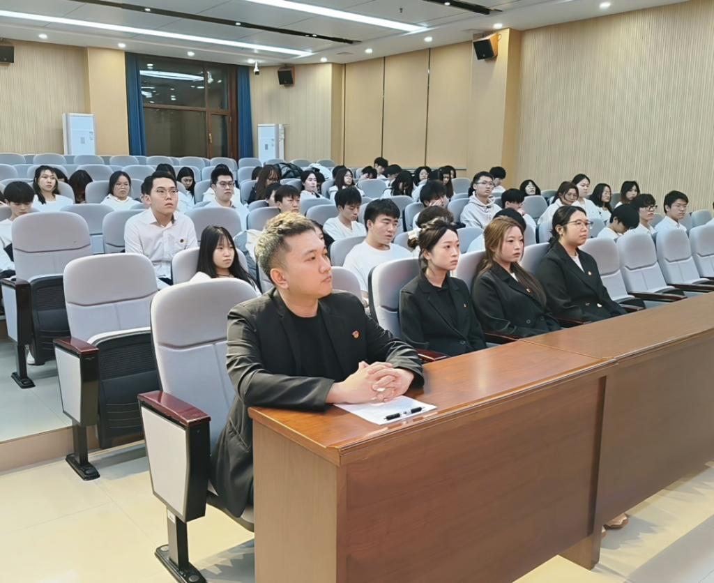 仪式在庄严的中华人民共和国国歌声中拉开帷幕。现场宣读了2025年下半年新发展团员名单,老团员代表带领新团员庄严宣誓,铿锵有力的誓词彰显着新团员加入共青团的坚定决心。随后,工作人员为新团员佩戴团徽,一枚枚团徽在胸前闪耀,标志着他们正式成为共青团的一员。
