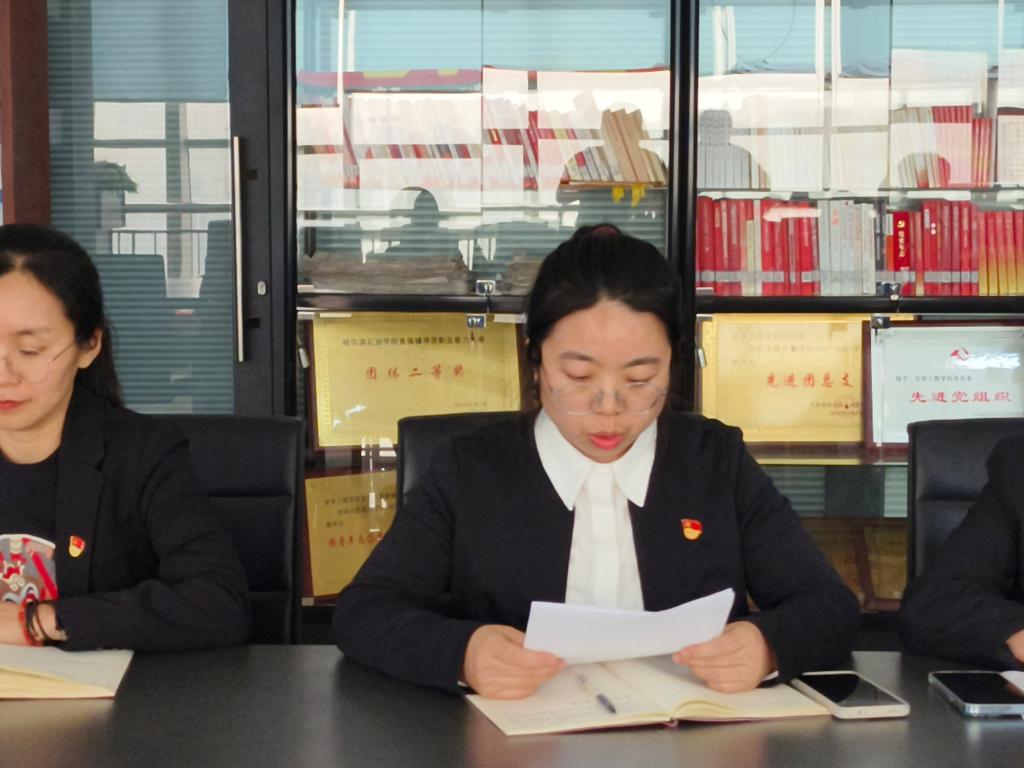 教工党支部宣传委员李莹娟表示,要牢记习近平总书记的殷殷嘱托,紧密结合思想和工作实际,结合工作需要进行学习,做到干什么学什么、缺什么补什么。同时,做好本职工作相关的新知识新技能,不断完善履职尽责必备的知识体系。同时,不断加强理论学习和创新,在课堂上融合课程思政,实现理论学习的深化、内化和转化。