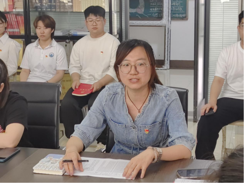 首先,学生党支部书记于鑫向大家介绍学生党员管理方案,她强调为了搭建实习期间校外党员与校内学生党员及积极分子沟通的桥梁,现制定校外实习党员和校内党员及积极分子结对活动,预备党员和积极分子从九月份开始需每月向校外党员进行思想汇报,校外党员对校内党员和积极分子进行实习工作分享交流,充分利用“校内+校外”资源搭建平台,发掘党员自身的优点,帮助学生党支部进行良好建设。