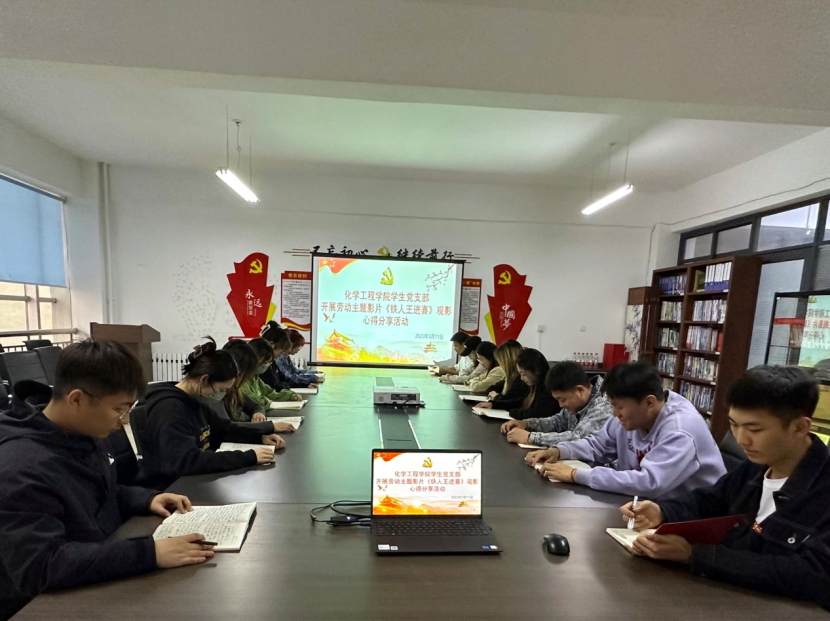 为深入开展学习贯彻习近平新时代中国特色社会主义思想主题教育,让同学们树立正确的劳动观,营造崇尚劳动、尊重劳动的良好氛围,2023年5月11日,化学工程学院学生党支部于第二教学楼党员之家开展劳动主题影片《铁人王进喜》观影心得分享活动,在校学生党员参加此次活动。