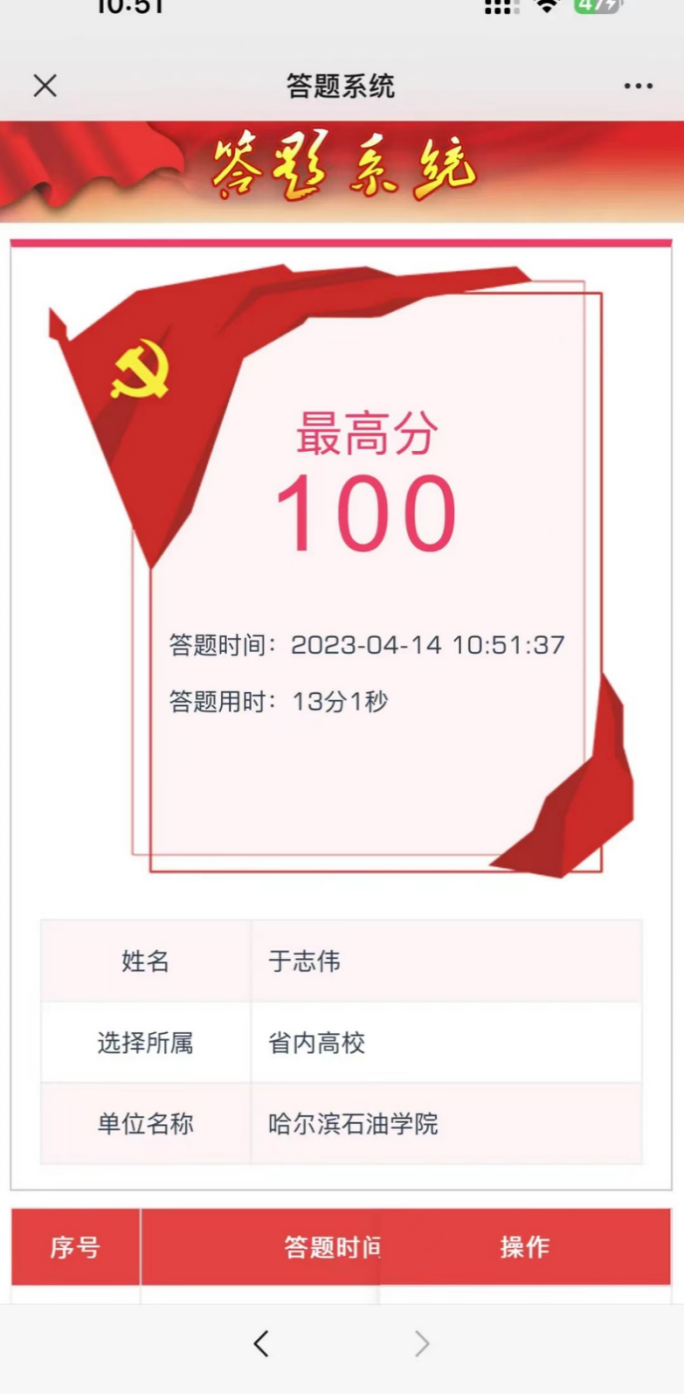 国家安全,你我同行。为切实增强全民国家安全意识和素养,深入贯彻落实总体国家安全观,提升学院师生党员对国家安全法律知识的理解与认识,2023年4月14日,化学工程学院党总支组织师生党员参加国家安全知识网上答题。