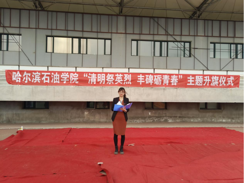 学院党总支副书记赵婧进行国旗下讲话,她深切的缅怀了那些为国捐躯的共产党人和爱国志士,表示每一个中国人都不会忘记是他们用鲜血和生命铸就了新中国诞生之路。并强调,作为伟大祖国新一代的接班人,我们必须珍惜这来之不易的美好生活,继承革命先烈优良传统,志存高远、主动作为、勤奋昔时,持之以恒,发扬伟大的奋斗精神、爱国精神和无私的奉献精神,用自己不懈的努力为出彩人生打下坚实的基础。