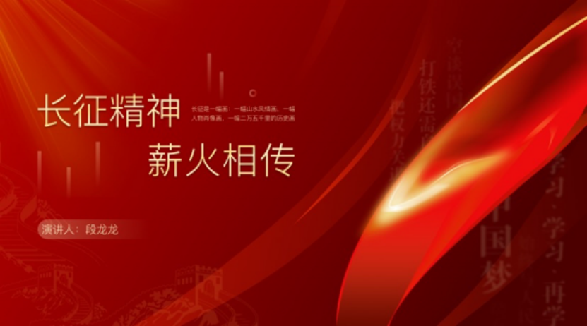 段龙龙讲解了长征精神。长征精神为中国革命不断从胜利走向胜利提供了强大精神动力。继承和发扬长征精神,对于建设有中国特色的社会主义,实现中华民族伟大复兴的强国梦,具有重大意义。