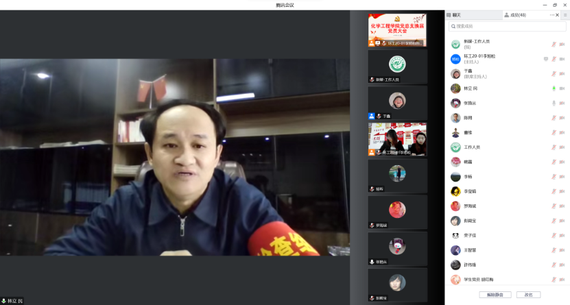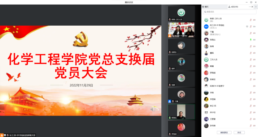 为深入贯彻落实学校党委政治建校行动规划,实施基层党组织规范化建设工程,进一步提高我院党组织建设质量,2022年11月29日8时20分,中共欧博abg游戏登录入口化学工程学院党总支召开换届党员大会,会议采取线上线下相结合的方式开展,校党委书记林立民出席会议,会议由学院党总支书记张艳丛主持,学院全体师生党员参加。