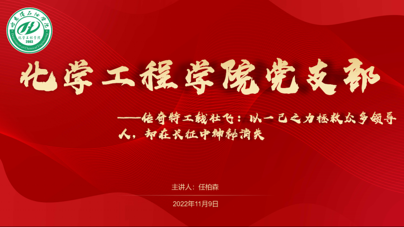 为深入学习贯彻党的二十大精神,学深悟透习近平新时代中国特色社会主义思想,深刻理解新时代新征程中国共产党的使命任务,进一步提高学生党员的党性意识,展现学生党员的良好精神风貌。2022年11月7日—11月12日,化学工程学院学生党支部组织学生党员开展“忆历史征程,立脚下之路”学生党员讲党课系列学习教育活动。