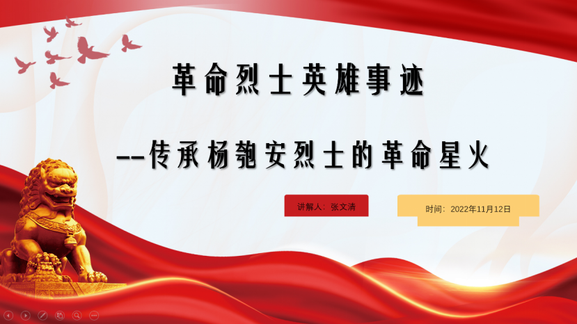 张文清讲解了我党早期优秀理论家杨匏安在上海极其艰难和危险的环境中,积极从事党的编译工作,宣传伟大的马克思主义精神。