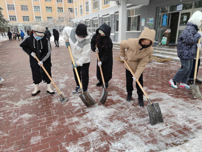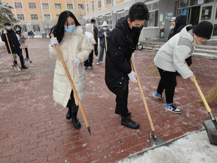 此次清雪活动,同学们认真负责、积极肯干的身影在严寒冰冷中呈现出一道靓丽的风景,用实际行动践行了社会主义核心价值观,用自己的劳动和汗水,保证了道路的安全畅通,发扬了奉献、友爱、互助、进步的志愿奉献精神。