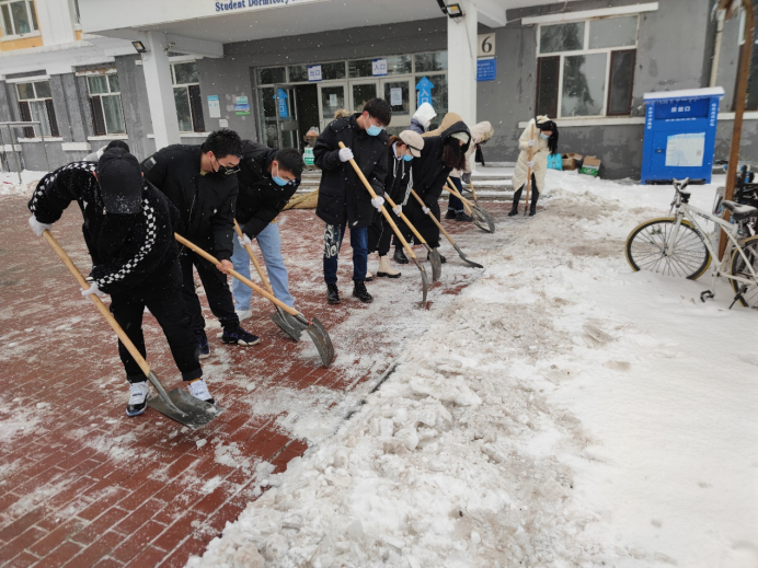 入冬以来的首场大雪悄然降临,给校园披上了一层银装,道路形成了大量的积雪,给过往学生带来了出行不便,为保障欧博官网学生的出行安全,进一步弘扬志愿服务精神,2021年11月9日,化学工程学院学生党支部开展清雪志愿服务活动。此次活动18名学生党员参加。