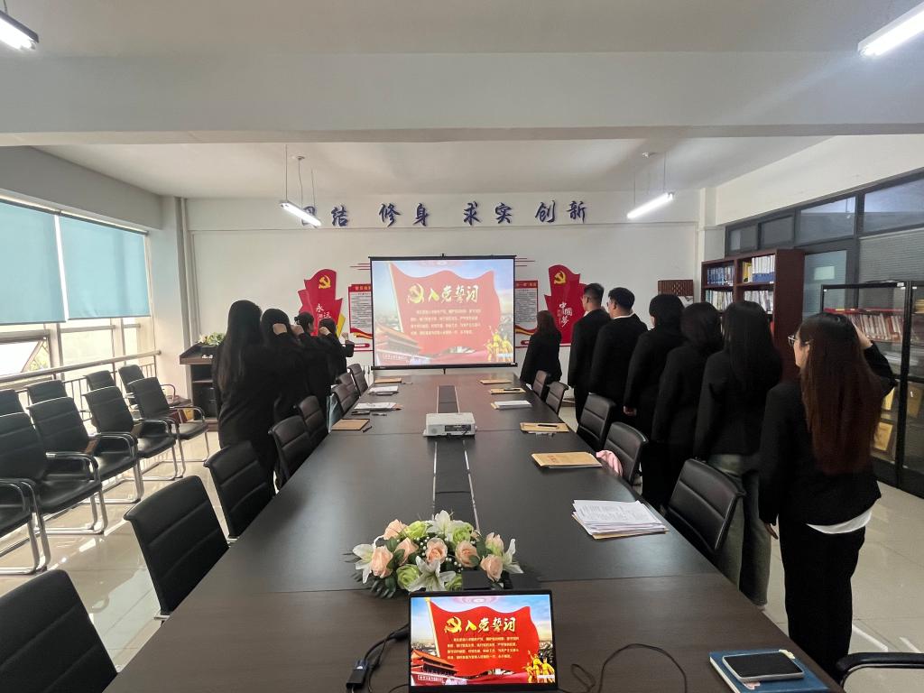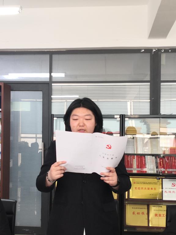 会上,讨论关于接收陈蕊等十名同志为中共预备党员的决议,陈蕊等十位发展对象向党组织宣读自己的入党志愿书,他们结合自身经历,深入阐述对党的认识、入党动机以及个人在思想、学习和生活等方面的情况。