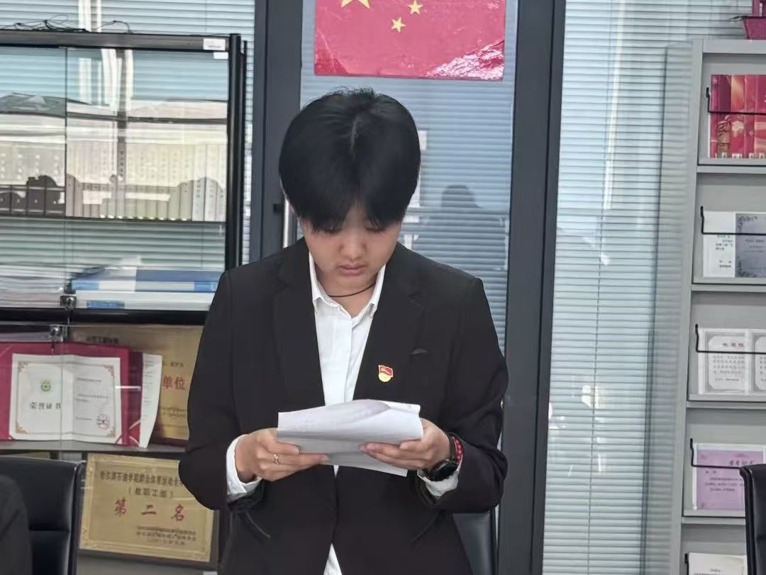 随后,于鑫书记对过去一段时间预备党员们的表现进行了总结。她指出,在这段考察期内,预备党员们积极参与党组织的各项活动,在思想上不断向党组织靠拢,认真学习党的理论知识;在学习和工作中,也展现出了良好的精神风貌和责任担当,取得了一定的成绩,但也存在部分同志理论联系实际能力不足等问题,希望大家能够重视并加以改进。