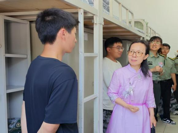 交流中,校领导特别关注新生角色转变与成长适应,结合军训开展鼓励大家:“军训不仅是体能的锻炼,更是意志的磨砺。希望大家发扬‘铁人精神’,培养不怕苦、不怕累的品格,在坚持与合作中不断成长。同时要尽早确立大学目标,努力钻研专业知识、提升综合素养,争做有理想、敢担当、能吃苦、肯奋斗的新时代青年。”