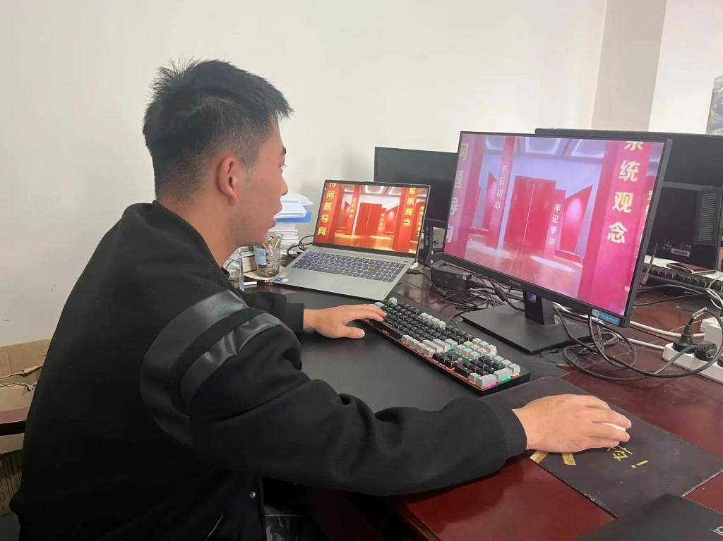 线上,大四学生党员,通过线上学习平台观看,党员们均以饱满的热情投入其中,端坐屏幕前认真聆听,及时标注重点内容,将党课中的精神内涵与思想精髓一一记录,做到学有所思、学有所悟,真正实现“离校不离学、学习不打烊”。