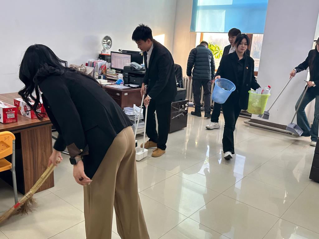 活动现场,同学们以铁人式的实干作风分工协作、默契配合,手持清洁工具对办公室桌椅、文件柜、地面进行全方位擦拭与深度清洁,对会议室角落积尘、杂物进行精细化整治,绝不遗漏任何卫生死角。大家以饱满热忱投身劳动,用实际行动诠释志愿服务精神,经齐心努力,办公与会议区域焕然一新,为师生打造出整洁雅致的环境空间。