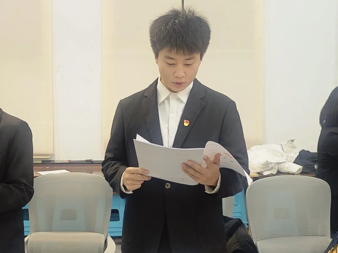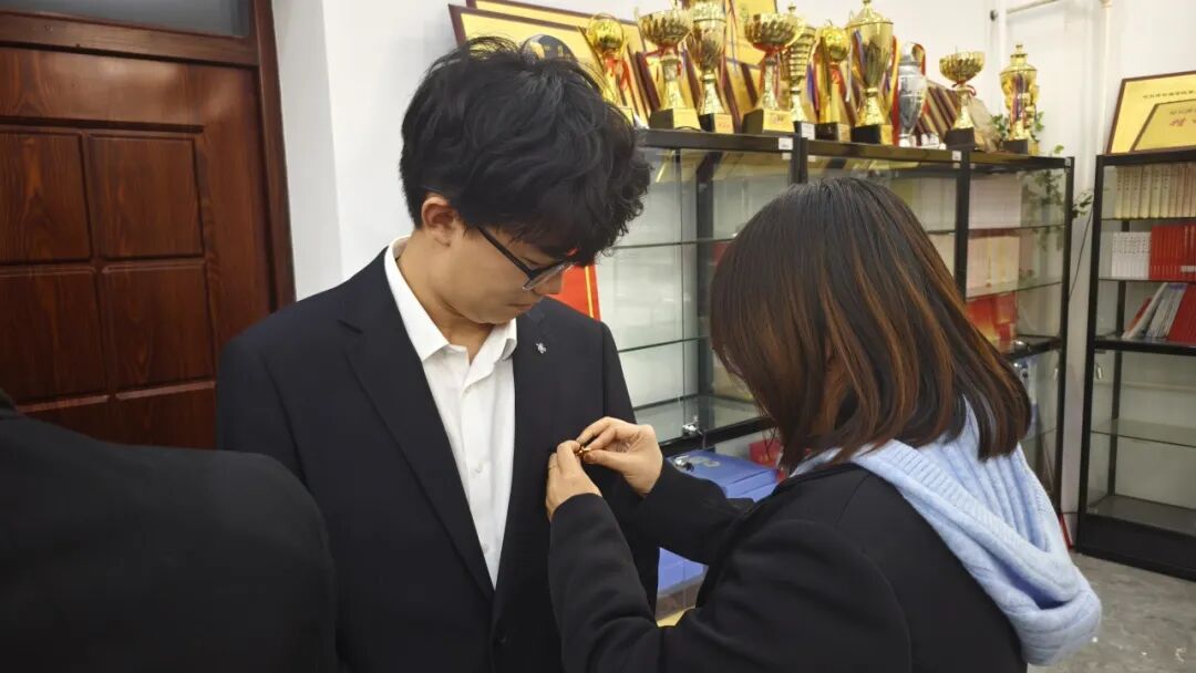 第四项议程,大会采用线上线下相结合的无记名投票方式进行表决。经各支部全体有表决权的党员投票表决,一致同意接收以上15名同学为中共预备党员。随后,各正式党员为新接收的预备党员郑重佩戴党员徽章,鲜红的党徽见证初心使命,标志着他们正式迈入党员队伍行列。