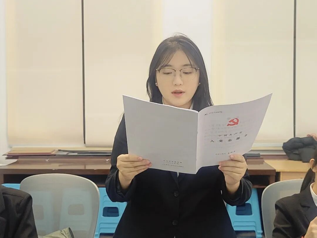 会议尾声,学生党支部书记作总结讲话。她们指出,发展党员是党组织建设的基础性、关键性工作,“组织上入党一生一次,思想上入党一生一世”。希望新加入党组织的同志,以成为预备党员为新的起点,严格以党员标准要求自己,持续深化理论学习,夯实思想根基,提升政治素养;在学习、工作与生活中主动作为、勇挑重担,严守纪律规矩,以实际行动践行初心使命,充分发挥先锋模范作用,为学院青年学子树立榜样。同时要求全体学生党员在学校党委的坚强领导下,以坚定的理想信念、扎实的工作作风,引领青年群体共同成长进步,为党组织发展注入新活力。